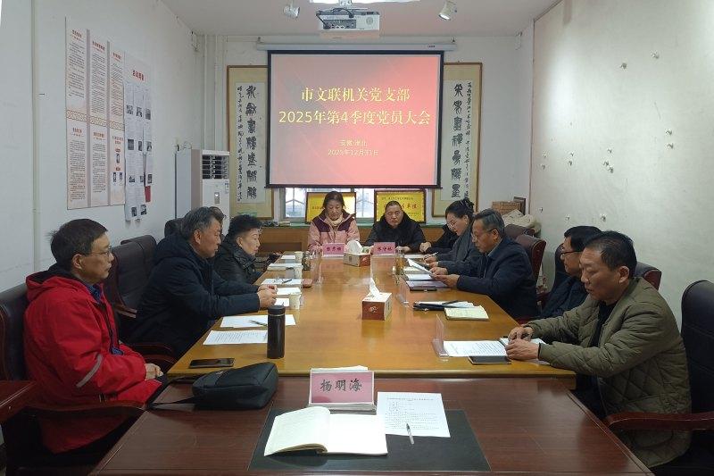 2025年12月31日上午,市机关党支部召开2025年第四季度党员大会,市文联党组书记、主席刘安顺主持会议,市文联机关党支部在职党、退休党员参加会议并围绕如何更好地推动淮北文艺事业高质量发展积极建言献策。