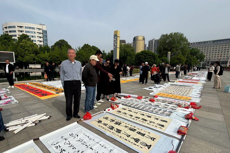 值得一提的是,本次活动还吸引了来自河南省的9名书画工作者与爱好者专程驱车前来观展,他们对活动的精心筹备、作品质量及社会影响力赞不绝口,纷纷表示,这场“地展”既展现了淮北的文化底蕴,也传递了向上向善的文明风尚,为两地书画文化交流搭建了优质平台。