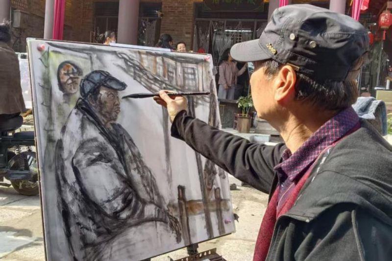 临涣古镇的古建风貌与民俗积淀,素为艺术家们心驰神往的创作沃土。一入古镇,历史厚重感与生活烟火气交织扑面,瞬间点燃了画家们的创作热忱。众人随即散至各处,凝神执笔,沉浸于写生之中:古镇腹地的百年茶楼内,沸水煮泡的“棒棒茶”香气氤氲,茶客们或闲话家常、或对弈品茗,神态悠然如古卷剪影。艺术家们提笔挥毫,细腻描绘茶楼的木构肌理与陈设雅韵,将茶俗风情与人物神采尽收画中。南城墙下,砖石斑驳,镌刻着岁月沧桑,与古镇肌理相映成趣;几位画家或俯身勾描形廓,或潜心捕捉光影,力求以笔墨传递墙垣的雄浑气势与历史的纵深厚度。创作间隙,他们不时交流心得、切磋技艺,将眼中之景与心中之情交融,使每一笔色彩都浸润着对这片土地的赤诚深情。